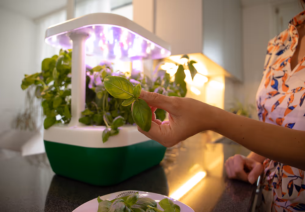 Diese Geräte verfügen über integrierte LED-Leuchten, die genau die für das Pflanzenwachstum erforderliche Lichtmenge abgeben. Das bedeutet, dass es keine Rolle spielt, ob der Raum über Tageslicht verfügt oder nicht, was ein großer Vorteil für Wohnungen mit wenigen Fenstern ist. Zusätzlich zur Beleuchtung enthalten die Geräte in der Regel einen Temperatursensor, einen Wasserstandssensor, eine Kamera zur Überwachung des Pflanzenwachstums, ein Wi-Fi-Modul für die Verbindung mit einer App und ein System zur automatischen Anpassung der Lichtverhältnisse.